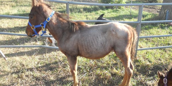 We rescued Ranger as a foal. His mom gave birth to him on a trailer headed to slaughter. Ranger was able to be saved, but unfortunately his mom was not. He came to us malnourished and scared.